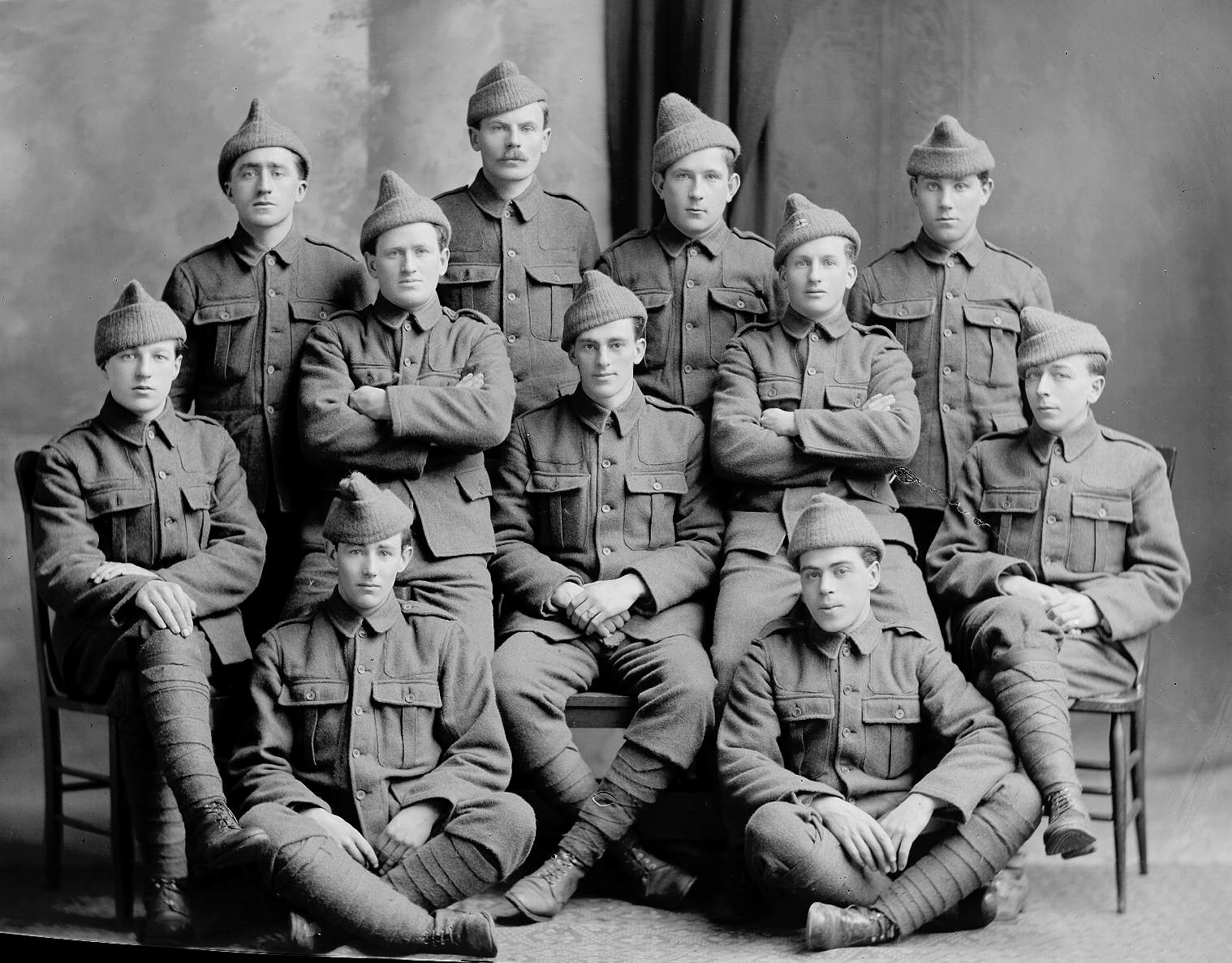 1915-1916. Onze volontaires du Royal Newfoundland Regiment.
